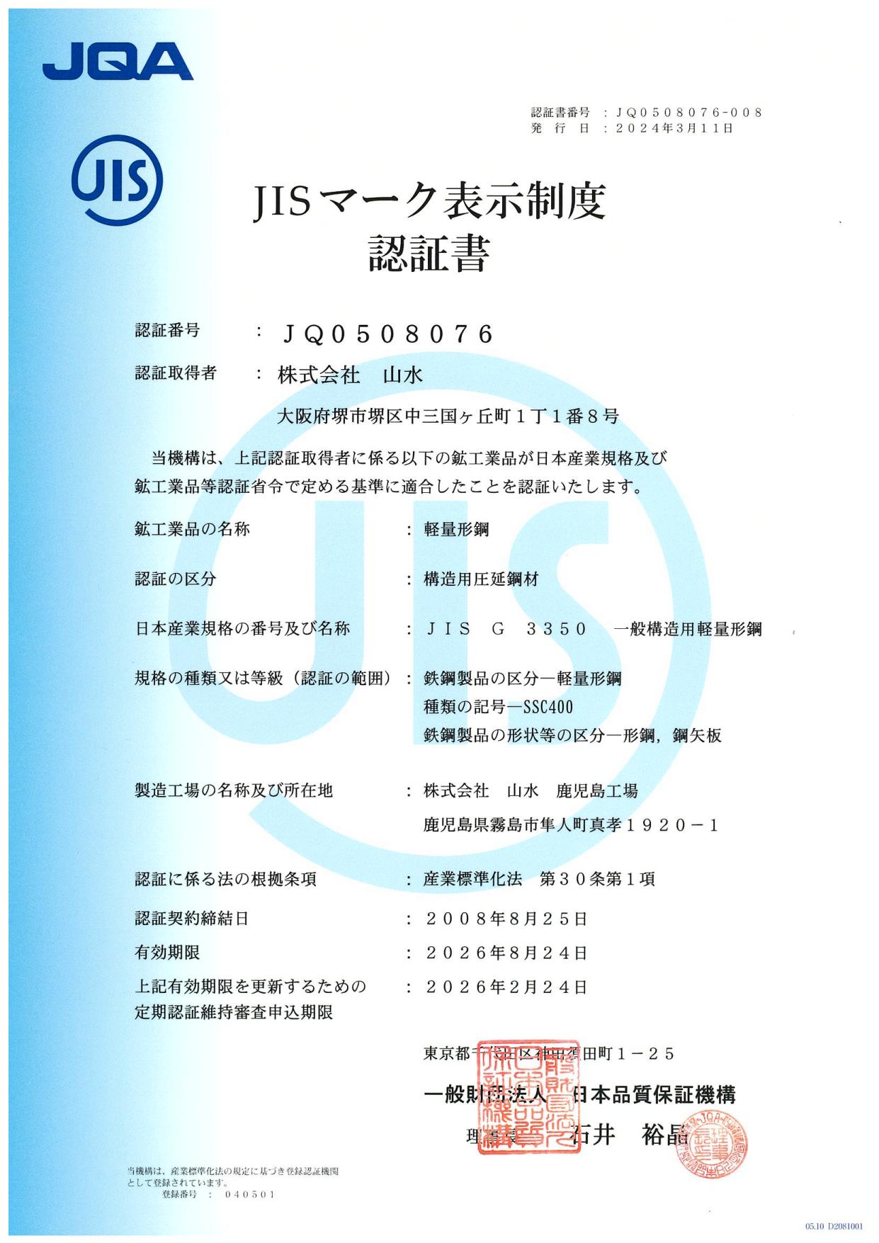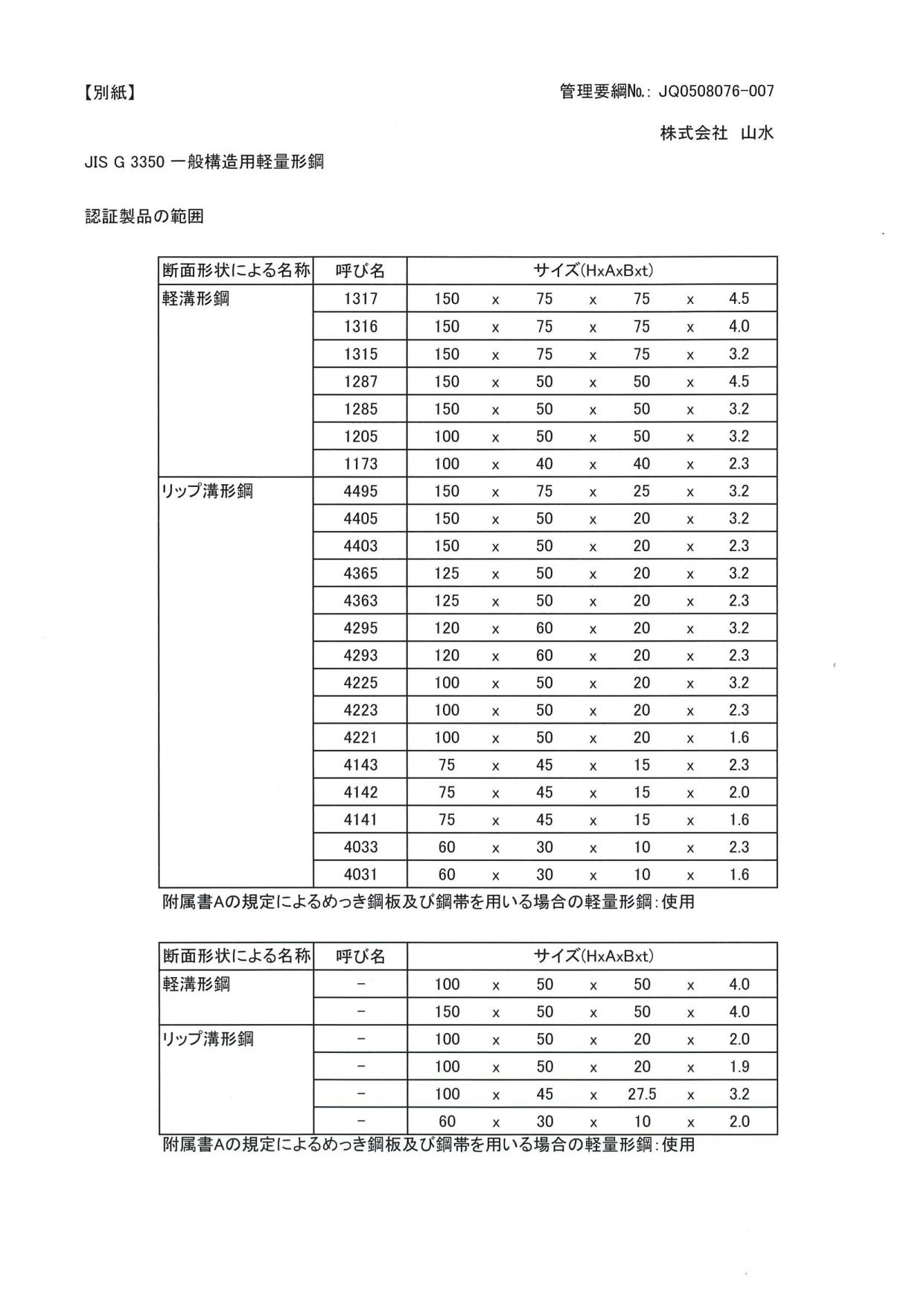 | SSC400 | 245以上 | 400〜540 | 5以下 | 5号 | 21以上 |